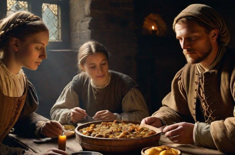 Религия играла важную роль в жизни общества того времени. Еда считалась даром Божьим, и расточительство по отношению к ней было греховным. Священники призывали прихожан заботиться о нуждающихся и делиться излишками. В богатых семьях объедки со стола не выбрасывались, а раздавались бедным или шли слугам. Например, в королевском дворе работники, занимавшиеся приготовлением мяса, получали жир и обрезки в качестве оплаты труда.