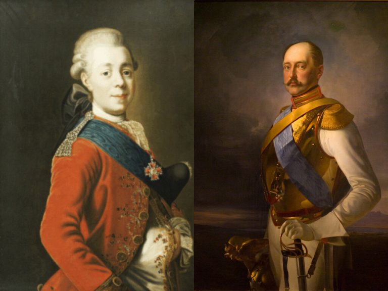 Первая жена Павла Петровича скоропостижно скончалась при родах. Вторую жену своему сыну сосватала Екатерина II. То была вюртембергская принцесса, получившая в России имя Марии Федоровны. В литературе обычно подчеркивается, что брак Павла с нею был счастливым. Она родила будущему императору десять детей, из которых девять дожили до взрослого возраста, в том числе четырех сыновей, два из которых царствовали.