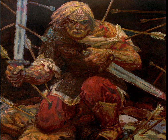 И после тяжкой битвы, один на один с самим Таврулом, богатырь не сдавался, и тогда монголо-татары в ход пустили самое тяжелое оружие – по́рок. Это катапульты, или баллисты, использовавшиеся в качестве осадного орудия. Снарядами служили тяжелые камни. Точность попадания у них чрезвычайно мала – значит, ордынцы не жалели своих для того, чтобы поразить такую важную «мишень». И им это в конце концов удалось.