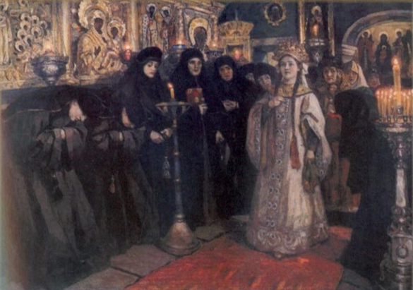 Чтобы скрасить монастырские тяготы в годы смут, Ксения занимается рукоделием – это ещё один её бесспорный талант, делающий царскую монахиню в глазах окружающих благочинной русской женщиной, ибо шитьё пелён и церковных покровов считалось делом богоугодным и включалось в число подвигов «святых» женщин.