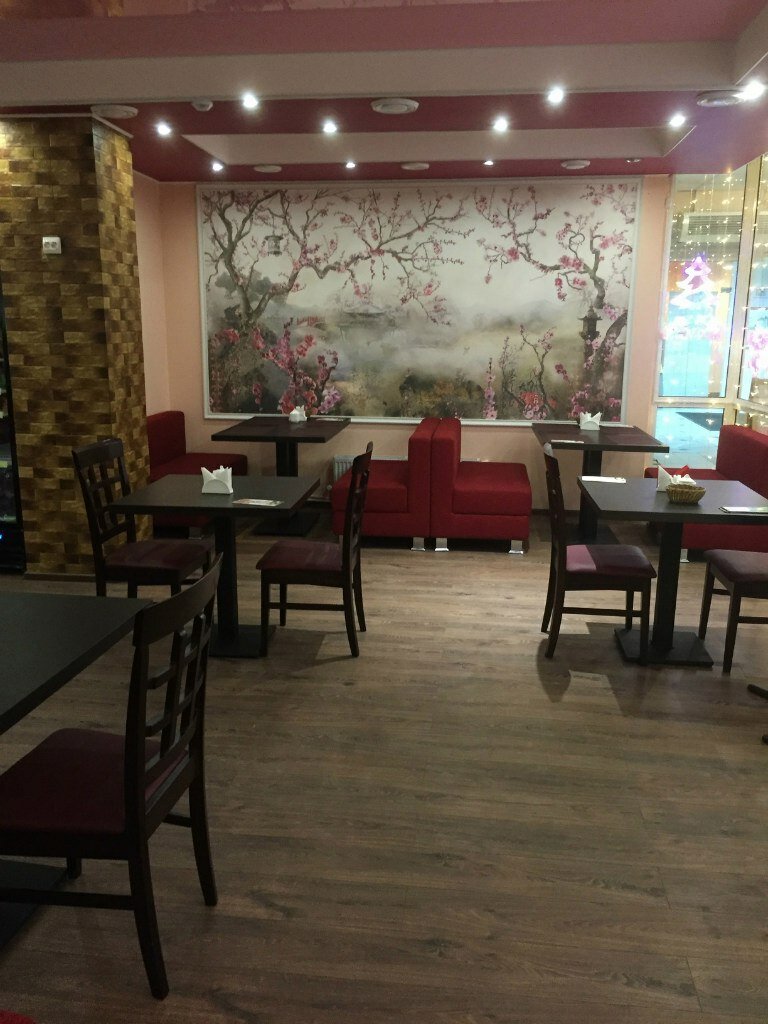 В зале ресторанчика достаточно уютно. На стенах сразу привлекают взгляд красивые картины с тематикой "Япония". Приятно кушать под цветущей сакурой. У заведения много приятных откликов.