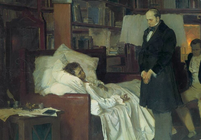 Согласно хронике последних дней поэта, раненого внесли в дом, он переоделся в чистое бельё и лёг на диван в кабинете, где и провёл все оставшиеся часы. Главной уликой, помимо дивана, была сохранившаяся окровавленная жилетка Пушкина.