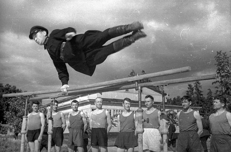 Ключевую роль в развитии физкультурного движения в СССР сыграл военно-спортивный комплекс, известный под названием «Готов к труду и обороне». Нормы ГТО включали в себя бег на три различных дистанции, прыжки в длину и высоту, метание гранаты и толкание ядра, велосипедный кросс, лыжные гонки, плавание, подтягивания на перекладине, толчок штанги от груди, стрельбу из малокалиберной винтовки и из боевого оружия, а также туристские походы. Специально для сотрудников правоохранительных органов в дополнение к вышеперечисленному добавили лыжный переход на 50 км, прыжок с парашютом и выполнение разряда по самбо. Сотрудники НКВД всегда активно участвовали в сдаче норм ГТО. Мужчины в возрасте от 19 до 28 лет должны были уметь от 11 до 13 раз подтянуться, 75-85 раз поднять штангу и как минимум 40 раз отжаться. Кроме того, важный вклад в развитие физкультурного движения в органах внутренних дел внесло спортивное общество «Динамо». Динамовцы организовали переходы на шлюпках по маршрутам Смоленск – Севастополь, Астрахань – Москва, велопробеги Тифлис – Москва, Красноводск – Ташкент, Одесса – Владивосток, велопробеги вокруг границ Советского Союза.