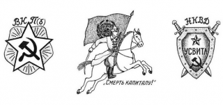 Идеологические символы — серп и молот, аббревиатуру ВКП(б).