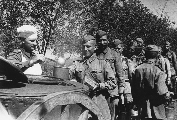 В это тяжелое время вся страна работала на фронт. На передовую направлялась основная масса имевшегося в наличии продовольствия. В армию также отбыли десятки тысяч поваров, для которых фронт стал настоящей кулинарной лабораторией. Они старались на славу, делая рацион бойцов по возможности богаче и питательнее. Многие ветераны войны признавались, что такой вкусной каши, как на войне, они не ели больше никогда.