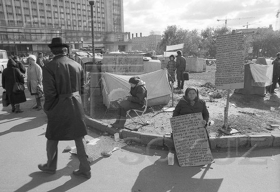 В июле 1990 года на Красной площади недалеко от Васильевского спуска в считаные дни вырос несанкционированный властями палаточный городок. Здесь уже на постоянной основе разместились недовольные происходящим в стране. Место было выбрано неслучайно. В расположенной рядом гостинице «Россия» жили депутаты съезда Верховного Совета, которые ходили на заседания в Кремль как раз через территорию лагеря, что позволяло бастующим лицом к лицу пообщаться с народными избранниками.