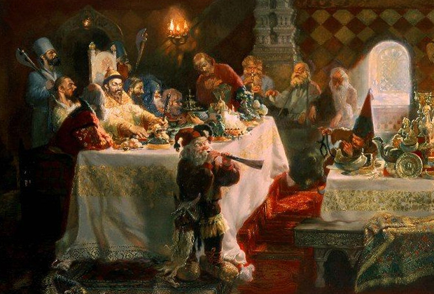 Царские пиры длились до 10 часов и включали до 200 блюд — от жареных лебедей до павлинов с опахалами из перьев. Однако сам Иван редко ел, наблюдая за гостями. Бояре и иностранцы, объедаясь кулебяками, расстегаями и пирогами, порой утирали жир бородами или сморкались на пол, что шокировало европейских послов. Для царя такие сцены были частью ритуала, а не наслаждения едой.