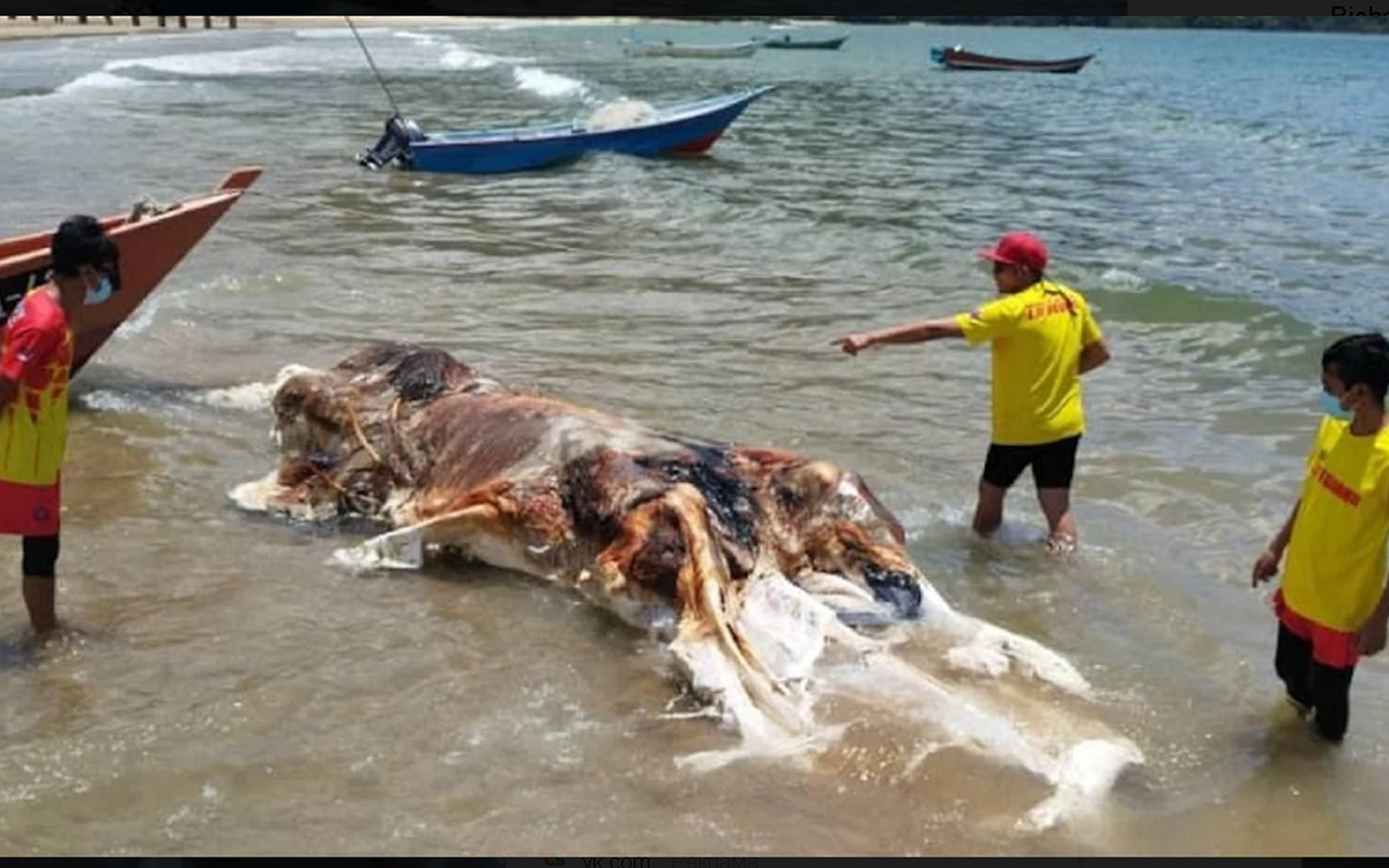 5 апреля на пляже в Малайзии местные жители обнаружили разложившийся труп неизвестного морского существа. Об этом сообщает портал LiveScience со ссылкой на местное агентство по чрезвычайным ситуациям.