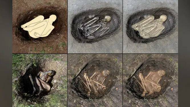 Недавно ученые решили использовать эти фотографии для реконструкции захоронений и обнаружили необычные особенности мумифицированных тел. Они обратили внимание на то, что кости одного из скелетов были «гиперфлексированы», то есть руки и ноги были сдвинуты за пределы их естественного положения, что указывает на то, что тело было связано после смерти. Кроме того, кости скелета все еще были соединены, что необычно для такого древнего периода, так как обычно маленькие кости ног полностью разрушаются при разложении тела.