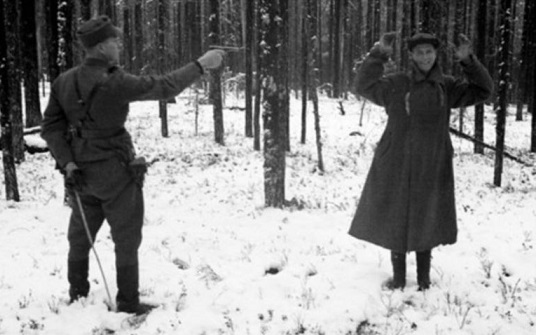 Кроме того, немецкая фотохроника зафиксировала показательный расстрел двух красноармейцев, захваченных в плен после боя за высоту 122 в Мурманской области. На снимках один из бойцов, Сергей Корольков, стоит в позе «руки в боки», с легкой, презрительной улыбкой на лице, в то время как немецкий офицер что-то кричит ему, тыча пальцем. На следующем кадре, сделанном уже во время самой казни, оба солдата сохраняют ту же невероятную выдержку и спокойствие.
