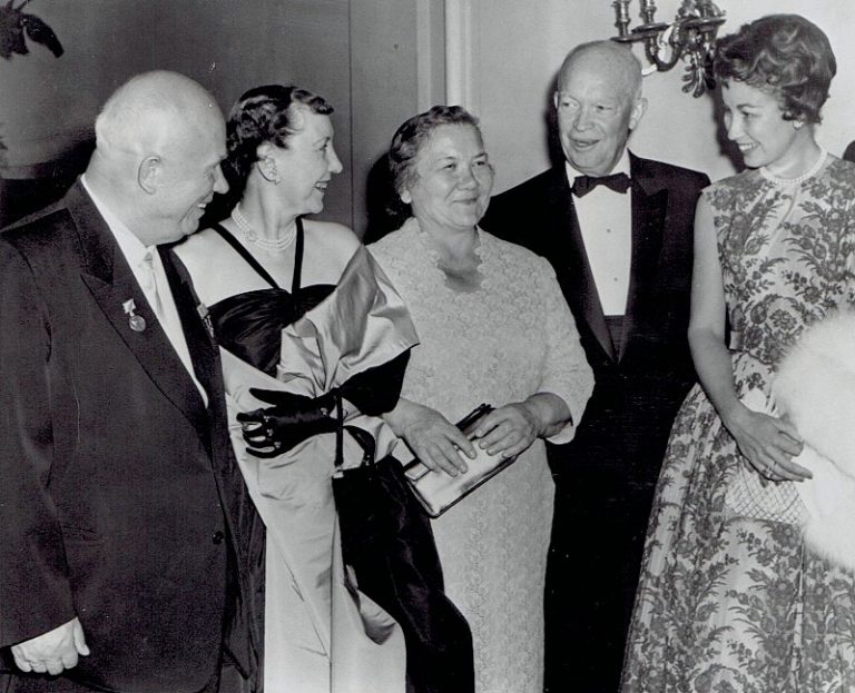 В годы сталинского правления жители западных стран привыкли к зияющему рядом с вождем СССР пустому месту – генералиссимус даже до гибели жены появлялся на людях один. С приходом к власти Никиты Хрущева ситуация кардинально изменилась. Его жена Нина Петровна Кухарчук не только активно участвовала в партийной работе, но и сопровождала мужа в заграничных поездках.