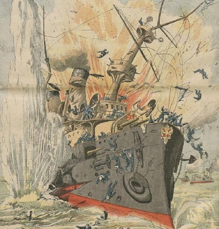 «Случайно», задев мину, погиб и крейсер «Петропавловск». Находившийся на нем адмирал Макаров погиб в первые минуты катастрофы. Один из матросов эскадры так оценил эту роковое для русского флота событие: «Что броненосец? Хоть бы два да еще пару крейсеров в придачу! Голова пропала!..».