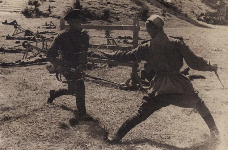 Обучение приемам рукопашного боя входило в обязательную подготовку бойцов. Даже на фронте, в промежутках между боями, продолжались занятия — солдаты отрабатывали приемы обезоруживания врага, методы схватки с противником, вооруженным холодным оружием, ведения рукопашного боя винтовкой, саперной лопаткой, штыком и т.п.