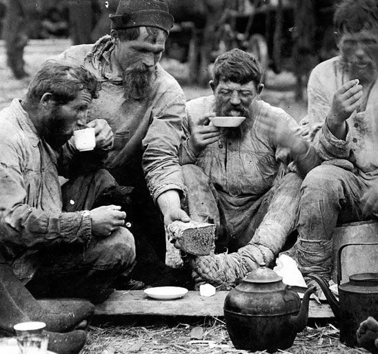 В то время как царь и приближенные наслаждались роскошью, слуги — часто наследственные рабы в домохозяйствах до ста человек — питались скромно, следуя строгим правилам "Домостроя", который регулировал рацион для поддержания порядка и экономии. Они ели дважды в день: на мясные дни — ржаной хлеб, щи из капусты, жидкую кашу с ветчиной или густую с салом, а на ужин — снова щи с молоком или кашу; в постные дни заменяли мясо рыбой, овощами, горохом, репой, овсянкой, соленьями или гороховой похлебкой. По воскресеньям и праздникам полагались пирожки, желе, блины или подобные угощения, а напитком служило второсортное пиво, улучшаемое элем в особые дни, — многие голодали или воровали, поскольку остатки с царского стола шли только приближенным, подчеркивая социальный разрыв эпохи.