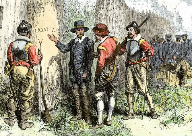 В 1587 году английский колонист Джон Уайт основал колонию Роанок на одноименном острове у берегов современной Северной Каролины. В колонию вошли 115 человек, включая женщин и детей. Уайт вернулся в Англию за помощью и продовольствием, но из-за войны с Испанией смог вернуться обратно только через три года.