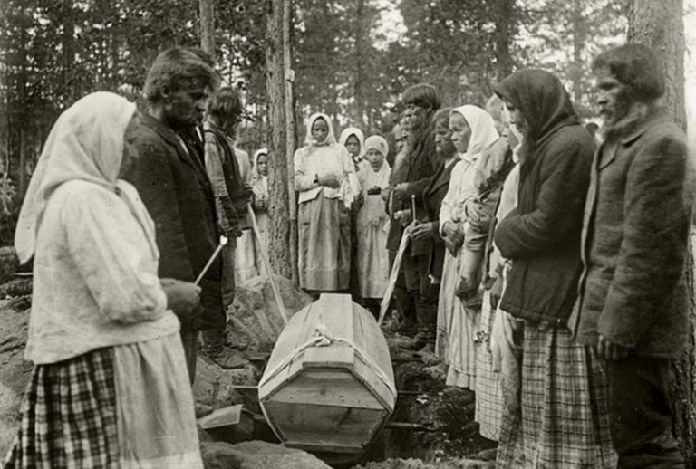 Но главным предвестником был сам человек. Если больной начинал «собирать узелки» или беспокойно «обираться» — поправлять на себе одежду — это значило, что часы сочтены. Изменение рисунка радужной оболочки глаз сулило смерть в течение суток. Тяжелая агония считалась признаком нераскаянного греха, а потому родные стремились облегчить переход: открывали все двери и окна в доме, «чтобы душе было легче выйти».