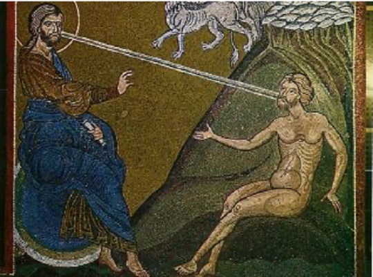 В понимании гностиков мир изначально был совершенен, но затем явился злой Демиург и стал, подражая Создателю, творить собственную материальную вселенную, нарушившую первоначальную гармонию. Изменению Демиург подверг и Адама, который превратился в дурную копию божественного создания – теперь он стал человеком-животным, ведомым лишь эмоциями и инстинктами.