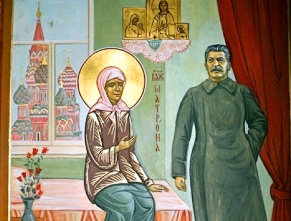 В 2008 году в храме Святой равноапостольной княгини Ольги в Стрельне (Санкт-Петербург) появилась необычная икона, вызвавшая широкий общественный резонанс. На ней была изображена Святая Матрона Московская, благословляющая Иосифа Сталина. Такой сюжет, воплощенный иконописцем Ильей Иосифовичем Пивником, вызвал бурные споры как в церковных кругах, так и в обществе, став предметом обсуждения в СМИ.
