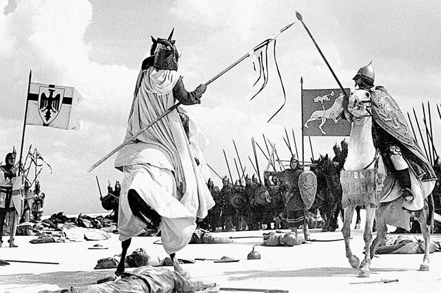 Тут сыграли роль две вещи. Первая — кинематограф. Гениальный фильм Сергея Эйзенштейна «Александр Невский» с его гиперболизированными образами: русские богатыри в простых кольчугах против неуклюжих «немцев», закованных в чудовищные латы. Художественный образ оказался сильнее исторической правды.