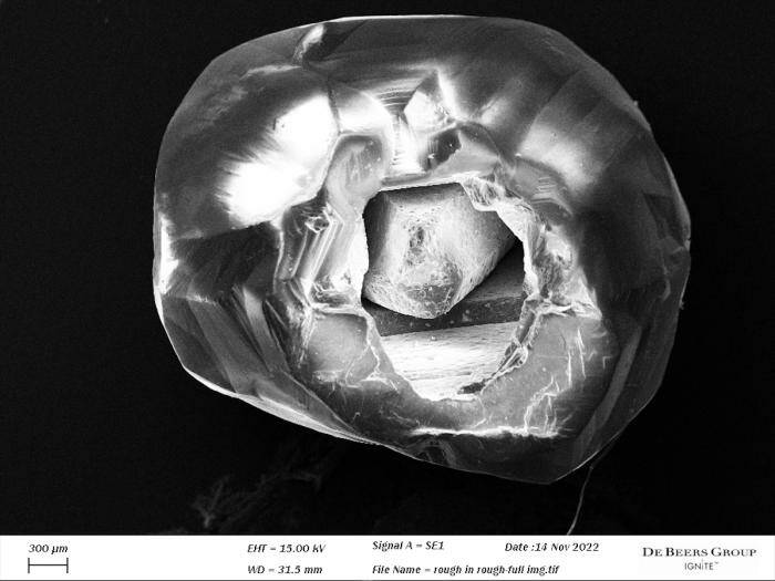Специалисты предполагают, что полость в алмазе образовалась, когда низкокачественный волокнистый алмаз был вытравлен — под воздействием внешних сил или из-за временной усталости материала — а в его сердцевине остался алмаз хорошего качества. Вероятно, последующий слой алмазного роста также был вытравлен, оставив только ядро и внешнюю оболочку.