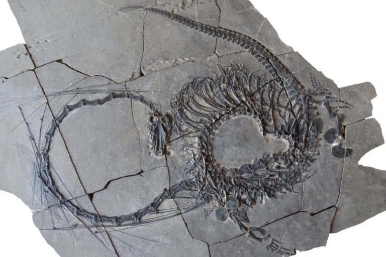 Этот морской ящер с длинной шеей существовал около 250 миллионов лет назад и напоминал восточного дракона. Длина диноцефалозавров достигала трех метров, из которых более половины приходилось на шею. Судя по всему, ящер охотился на рыбу и головоногих моллюсков, нападая на своих жертв из засады.
