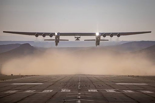 Самый большой в мире самолет Roc компании Stratolaunch, который может перевозить до 250 тонн грузов, готовится к испытательному полету с гиперзвуковым летательным аппаратом Talon-A на борту.
