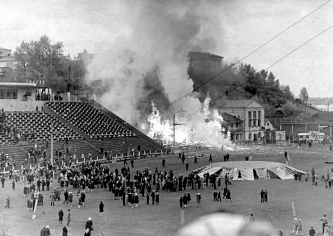 Реальность была страшнее. В деревянном административном корпусе хранились 1100 кг пиротехники для финального фейерверка. На втором этаже, прямо над складом, работал буфет. Что именно привело к возгоранию — до сих пор неизвестно. Очевидцы говорят о брошенном окурке или искре от проводки.