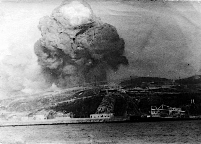 Характерная форма клубов дыма, поднявшихся над городом, заставила североморцев предположить, что Холодная война внезапно переросла в «горячую». Даже сейчас, глядя на снимки «грибов», сделанные матросами, нетрудно вообразить, будто это Рональд Рейган, как он грозился, «поставил Россию вне закона».