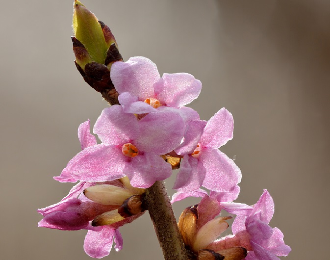 Начнём с самого красивого и самого страшного. Волчье лыко (или волчеягодник) зацветает одним из первых. Розовые или сиреневые цветы, похожие на сирень, покрывают голые ветки прямо из-под снега. Они пахнут — сладко, приторно, с ноткой ванили. Запах манит, но останавливает название. И правильно.