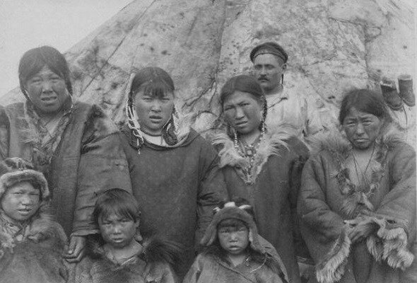 Чукотские мужчины татуировали лоб над глазами, виски, щеки. Еще в 1930-е годы прошлого века в чукотских селениях встречались мужчины, у которых была подобная охранная татуировка в уголках рта.