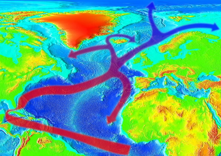 Ускоренное таяние ледников Гренландии и Арктики опресняет и «облегчает» океаническую воду. Поэтому тяжелым водам Гольфстрима становится труднее погружаться. Конвейер замедляется, а тепло не доходит в полном объеме до Северной Европы и арктических морей России.