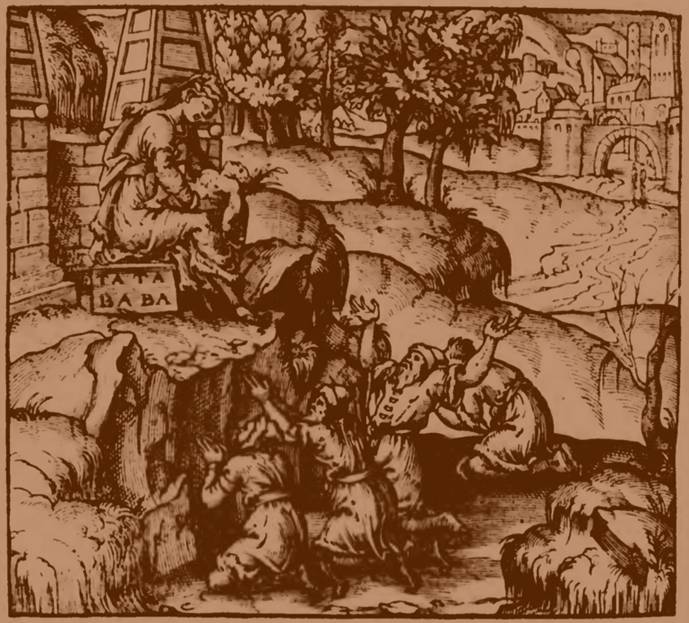 Впервые упоминание о «Золотой бабе» встречается в XIII столетии в скандинавской «Саге об Олаве Святом». Согласно сюжету произведения, примерно в 1023 году норвежские викинги во главе со знаменитым Ториром-Собакой отправились в поход в Биармию (район Северной Двины). Сначала всё шло по плану – путешественники проникли в святилище бьярмов, охраняемое шестью шаманами. Там они увидели много сокровищ и среди прочего – большую позолоченную статую. На её шее находилась драгоценная цепь, а на голове – золотая корона с двенадцатью различными изображениями.